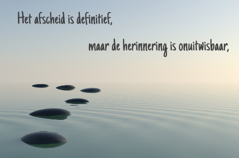 Om tot slot te reflecteren en aan te sluiten op het plaatje bij deze blog: het afscheid is ‘definitief’ maar de herinneringen zijn niet uitwisbaar. Laat het afscheid nemen niet gepaard gaan met barre omstandigheden, wees alert op bovenstaande tips in situaties dat afscheid nemen aan de orde komt en neem de beslissingen niet alleen! Of zoals Marco in een andere hit zingt: